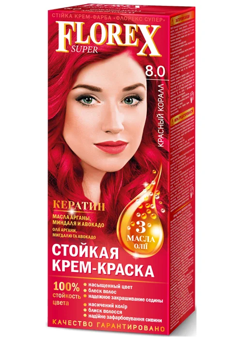 Vopsea pentru par crema FLOREX SUPER №8.0 Rosu Coral