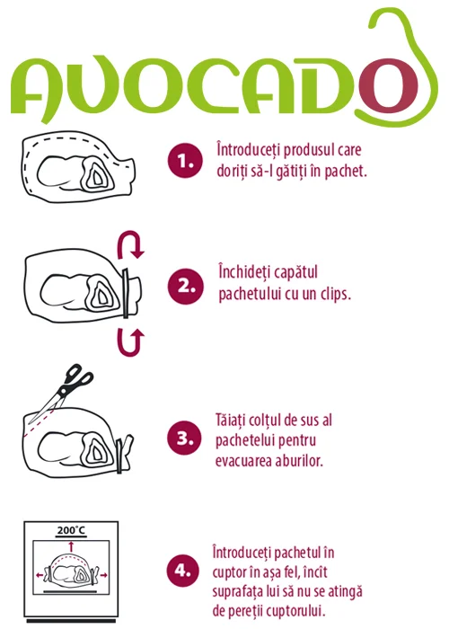 Sunt destinate pentru prepararea fripturii din carde de porc, pas[re, vită, dar și pentru fructe si legume. Nu necesită utilizarea grăsimilor, păstrează vitaminile, microelementele, gustul și aroma produselor preparate. Se folosește la temperaturi de pînă la 200℃. A nu se utiliză în cuptorul cu microunde sau la programul gril. Produs de unica folosintă.
